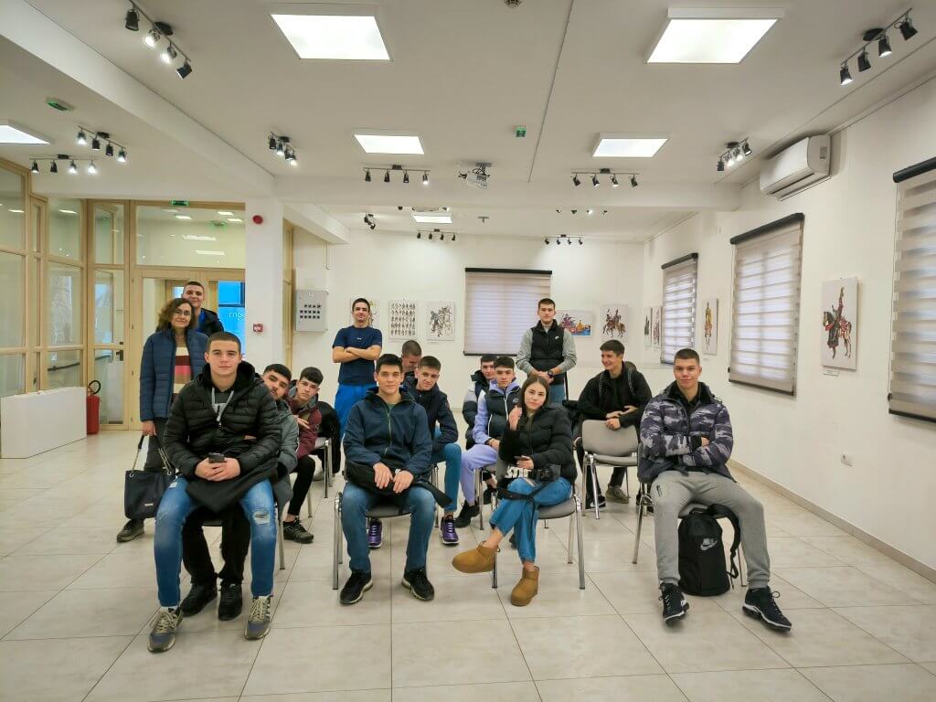 Последњи дан изложбе обележен је посетом ученика трећег разреда Прве техничке школе и њихове професорке Маје Павловић, који су се упознали са изложеним радовима аутора Душана Васиљевића.